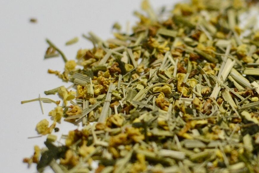 Green tea, osmanthus, lemongrass (green tea, lemongrass domestically grown, osmanthus from Taiwan, all organically grown)
